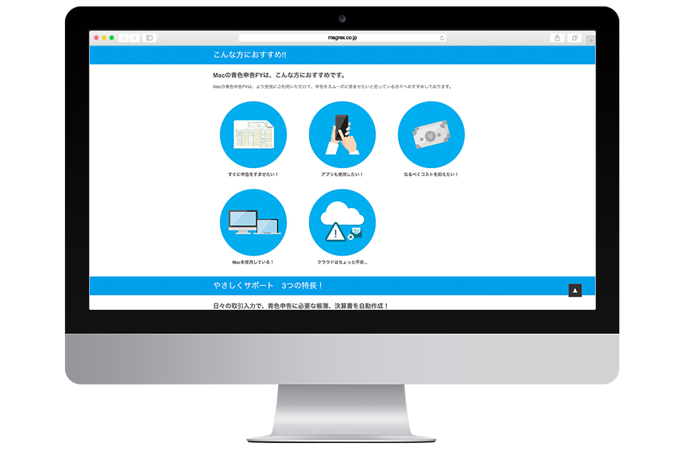 CASE STUDY 11事例紹介 11 マグレックス株式会社 DESIGN TYPE WEB DESIGN CREATION DATE 2015.09 PROJECT 新規WEBサイト制作 URL http://www.magrex.co.jp/aomacfy/ 個人事業主用の青色申告ソフトのダウンロード版の紹介サイトです。 戻る Copyright © 2017 BROAD SMILE
